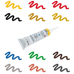 Використовується для розпису скла та кераміки, створення декоративних ефектів та імітації свинцевої стрічки у вітражній техніці.Контур об’ємний, однорідний, густий, еластичний, добре лягає на поверхню.Виконайте олівцем малюнок на папері. Помістіть ескіз під скло, яке ви будете розписувати, та закріпіть його скотчем. Працювати потрібно на рівній поверхні, щоб отримати рівномірну заливку. Поверхню скла протріть миючим засобом. Після цього можна приступати до нанесення контуру. Лінії контуру повинні бути замкнутими, для запобігання витікання фарби.